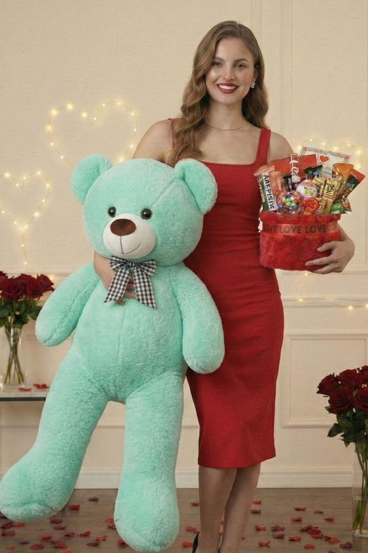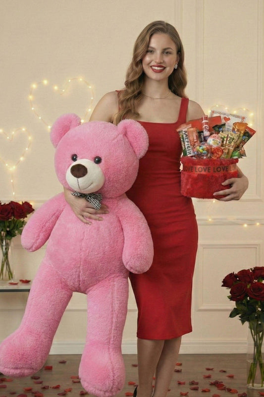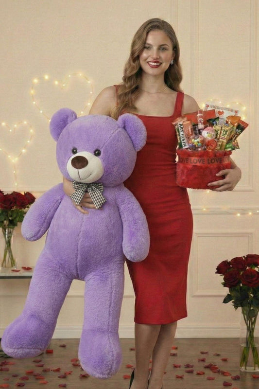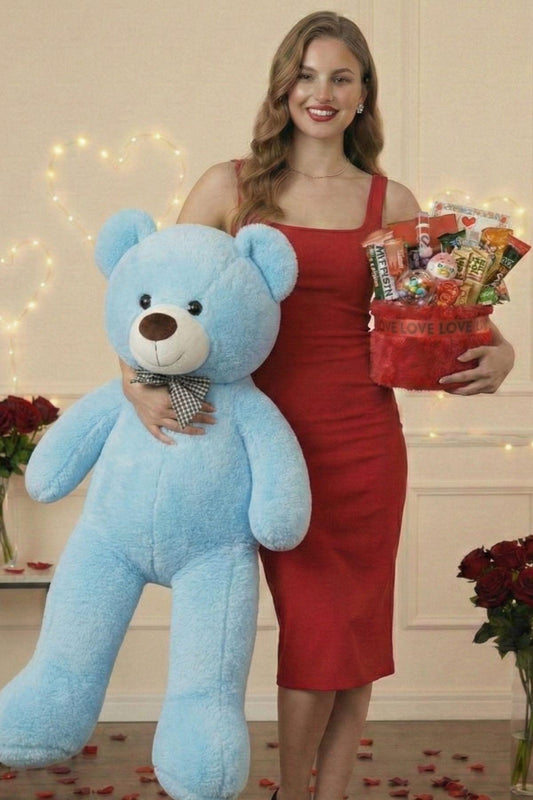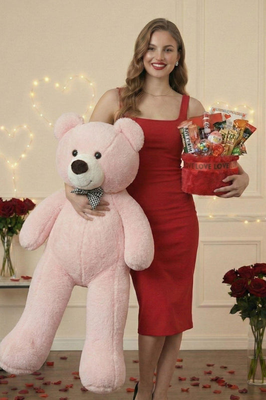 Kadınlar Günü Hediye Seti Sevgiliye Kıza 90 Cm Peluş Ayı, Ayıcık Buketi & Çikolata Sepeti Hediyesi