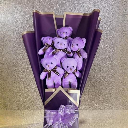 Premium 6 Yumoş Mor Peluş Ayıcık Buketi