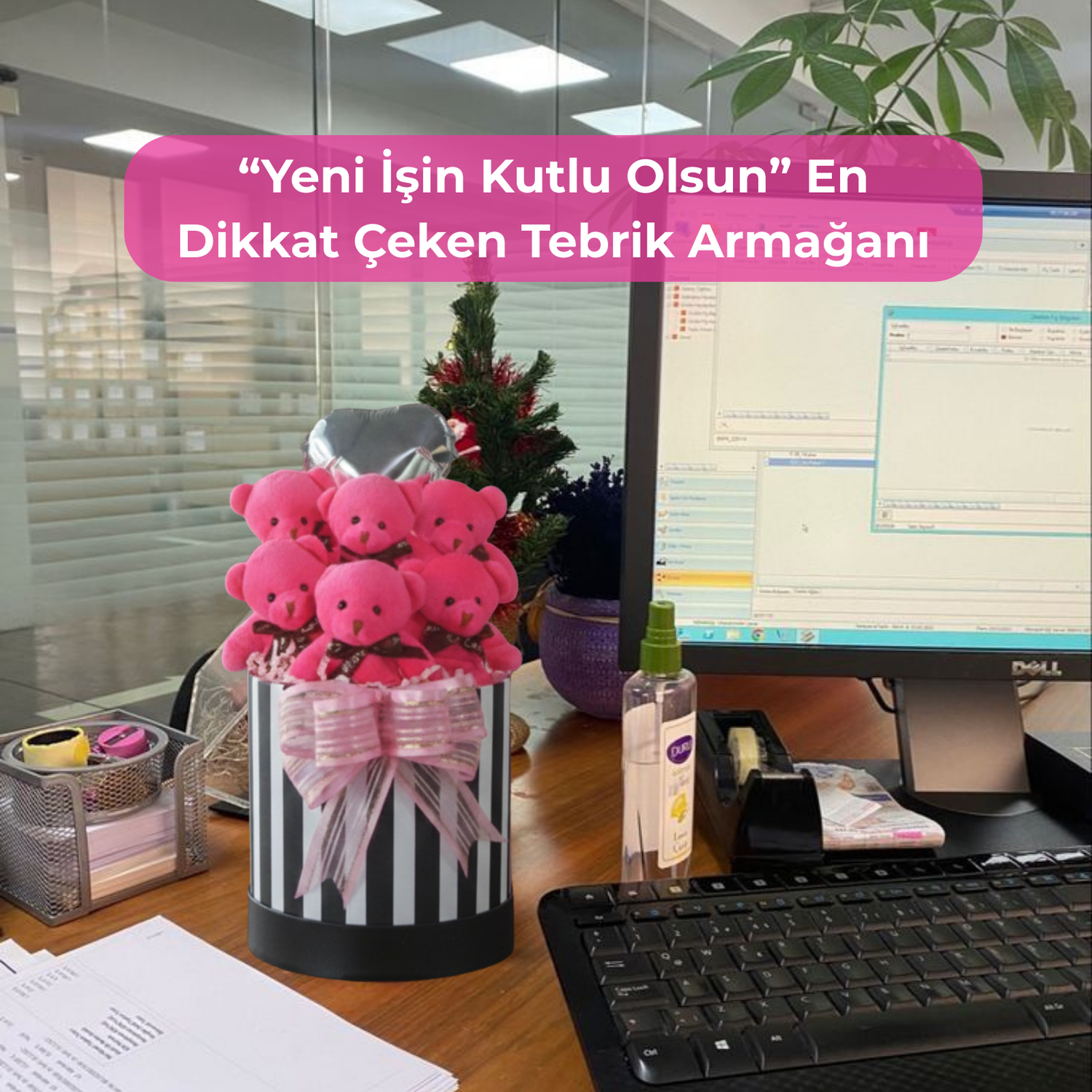 ✨ Yeni bir iş, yeni bir terfi... Başarıyı kutlamanın sıradan olmayan, enerjik ve samimi bir yolu var! Ofis ortamına neşe ve canlılık katacak bu fuşya ayıcık buketi, "Yeni İşin Kutlu Olsun" demenin en düşünceli ve dikkat çekici jestidir.