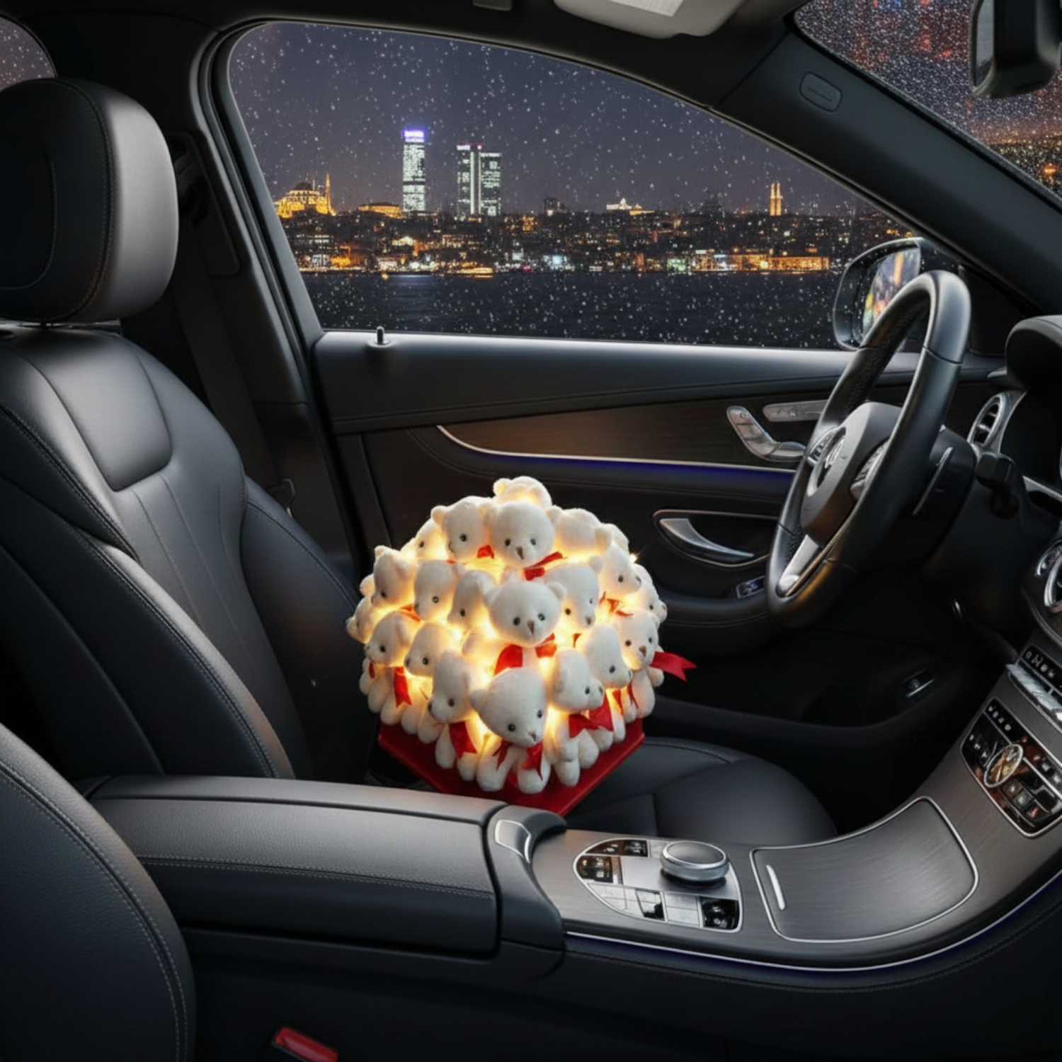 - Fotojenik Hediye: Arabanın lüks iç mekanı ve İstanbul manzarası eşliğinde, bu LED ışıklı buket, sosyal medyada en çok beğeniyi alacak hediyeniz olacak. 📸