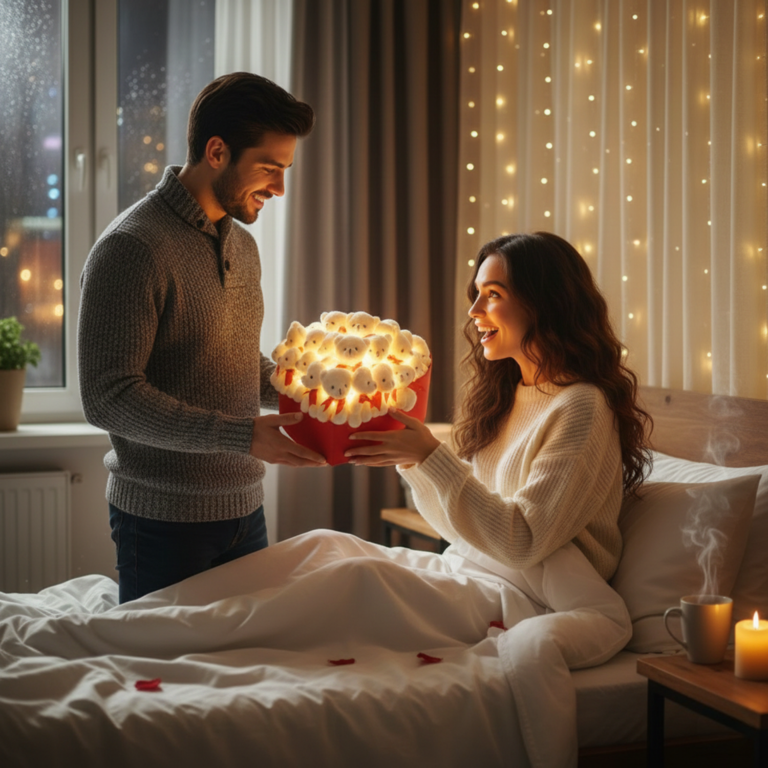 En güzel hediyeler, en beklenmedik anlarda sunulanlardır. Görseldeki gibi, önemli bir buluşmaya giderken, bu ışıklı buketin sağ koltukta size eşlik etmesine izin verin.