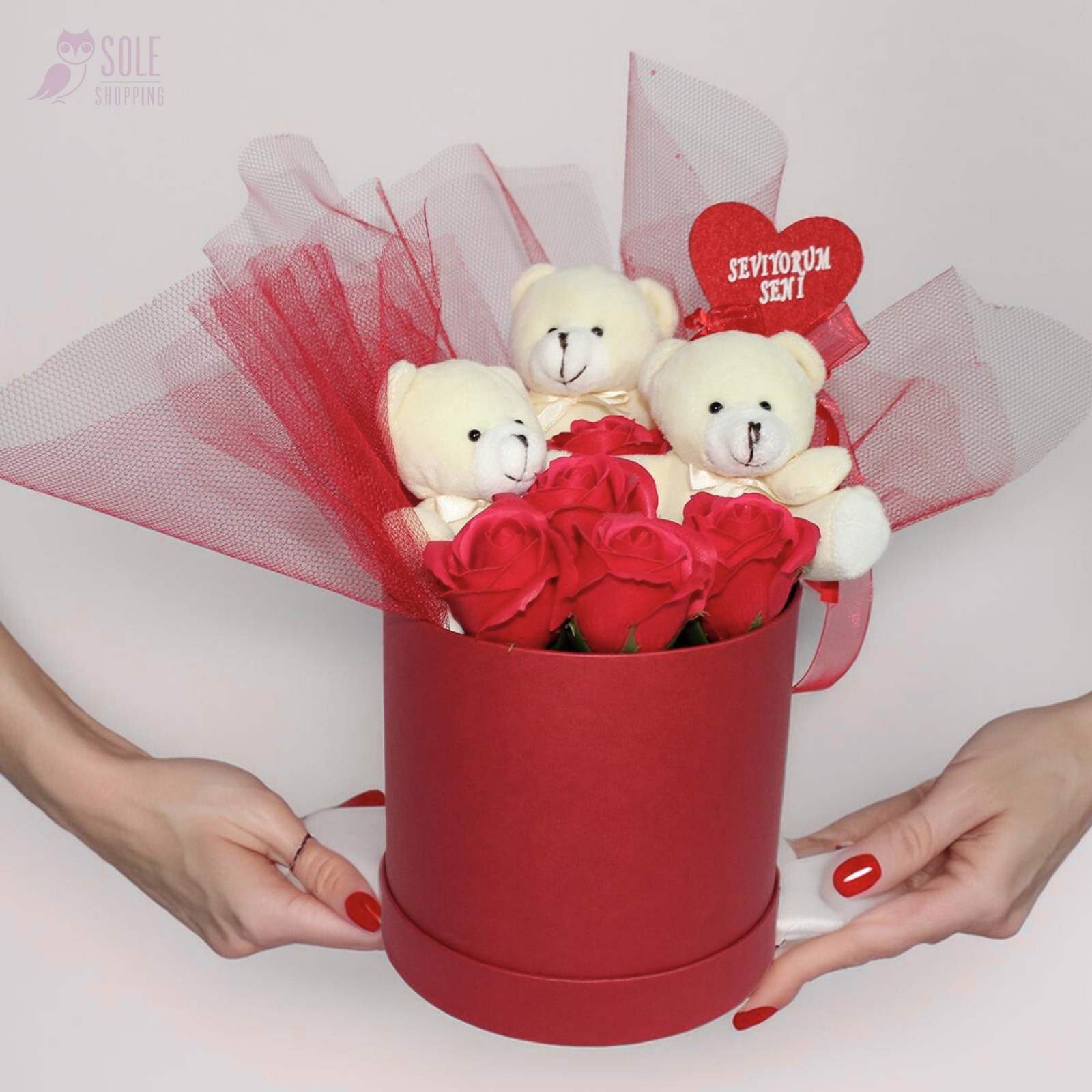 1 aralıkEEce V.Onaylanmış MüşteriHediye arayışımı bitiren, çok özgün bir tasarım. Kırmızının en güzel tonu kullanılmış. Ürünün elime ulaşma hızı ve satıcının ilgisi de 5 yıldızı hak ediyor.Aşkınızı Anlatmanın En Zarif Yolu: Özel Kutuda Minik Ayıcıklar, Kokulu Güller ve “Seviyorum Seni ” Bu Yardımcı Oldu Mu? 0 0